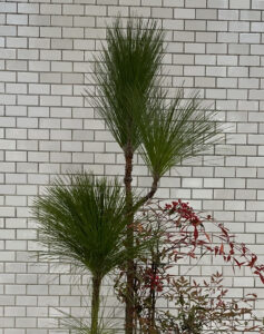 樹高が30~35mになる大型の松です。日本のアカマツやクロマツは、葉が2本1組で生じる「二葉松」ですが、大王松は3本1組の「三葉松」です。また、松の仲間では世界一長い葉を持つのが特徴です。別名は「ダイオウショウ」です。