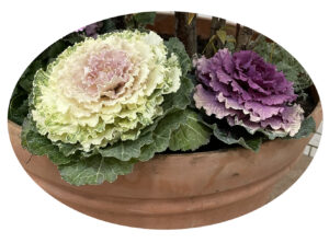 ハボタンの名前の由来は、葉が美しく色付いて花の牡丹のように見えることから名付けられました。ハボタンの祖先はケールです。ケールはブロッコリー、カリフラワー、芽キャベツ等の原種です。キャベツと同種なので、食べることができますが、あまり美味しくないようです。