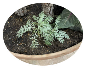 シルバーレースはシダ植物のような切れ込みのある銀白色の葉が特徴の常緑多年草です。葉には産毛が密集しており、柔らかな手触りです。見た目は透けたレースのようです。茎先に頭花を散房状に付け、頭花の周辺には白色の舌状花、中心には黄色の筒状化があります。